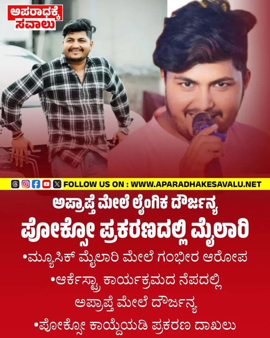 ಅಪ್ರಾಪ್ತೆ ಮೇಲೆ ಲೈಂಗಿಕ ದೌರ್ಜನ್ಯ ಮ್ಯೂಸಿಕ್ ಮೈಲಾರಿ ವಿರುದ್ಧ ಪೋಕ್ಸೋ ಪ್ರಕರಣ